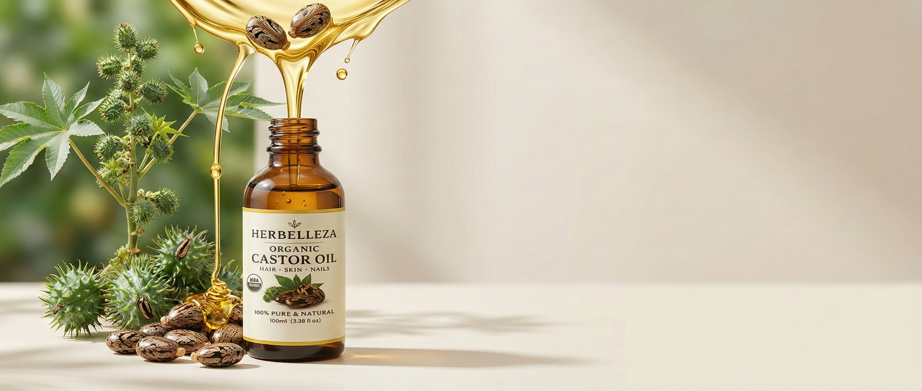Herbellezza Castor Oil is extracted using a slow cold-press process to preserve its natural nutrients, potency, and healing properties.